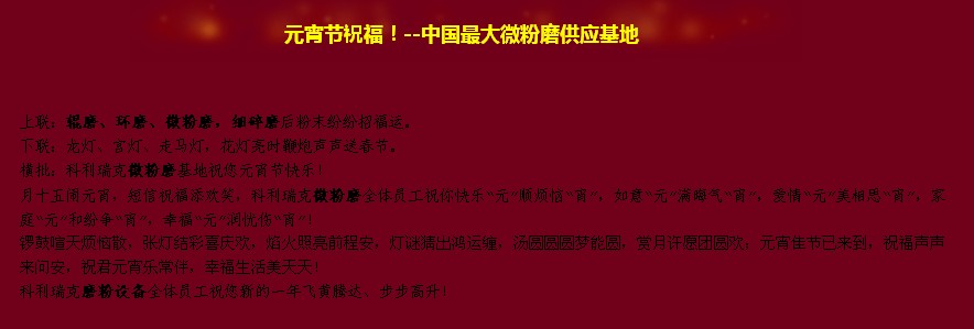 橫批:科利瑞克微粉磨基地祝您元宵節快樂!